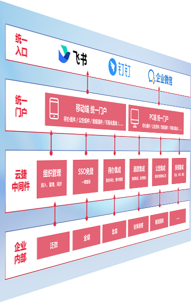 对协作平台提供支持服务,,,,支持企业应用与协作平台对接,,,包含组织同步、、消息集成、、、待办集成等。。。。支持目前主流的协作平台:钉钉、、、、企微和飞书。。。